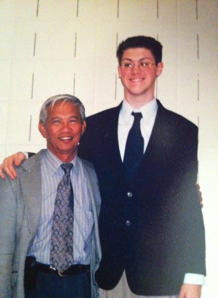 Perhaps others saw the assembly as a chance to skip some classes, but I thought it was a fascinating story. But what, I thought, would be my excuse to attend? Immediately I realized: I could write about it for the Observer. With Flannery's kind assistance, I not only saw Dith's speech but was granted some one-on-one time with him. I have some pictures of the event that I've not scanned, but one thing I do remember is a vaguely surreal candid: on one side of the table is me, reedlike in a brass-button blue blazer, holding a pen and notepad as I gesticulate mid-question; on the other side, Dith, in a grey jacket, listening intently while eating a big-ass deli sandwich that had been catered to him. (Schanberg's book The Death and Life of Dith Pran goes into detail about the adverse conditions Dith faced in the labor camps, subsisting on rats and vermin. Then and now, I think how quietly satisfying that sandwich may have been.)