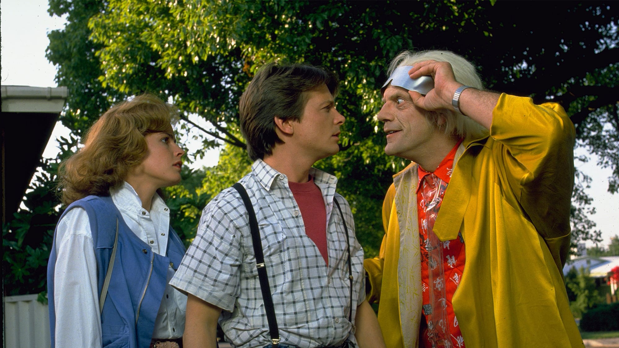 The cutting room floor: Most scenes written or shot but never used in Part II often tie into follow-ups to jokes from the first film. In the alternate 1985, before coming face to face with his mother and Biff, Marty encounters his older brother Dave, now a burned-out drunk. And when putting the flying DeLorean into action in 1955, Doc briefly attracts the attention of the pine farmer Peabody, the first to encounter Marty in 1955 in the first film, now convinced that Hill Valley is being invaded by more spacemen.